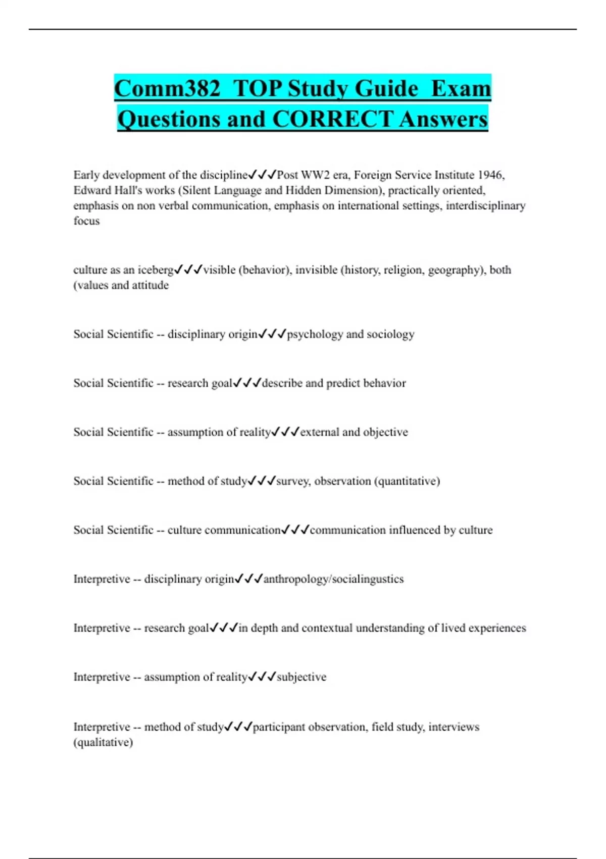 Comm382 TOP Study Guide Exam Questions and CORRECT Answers