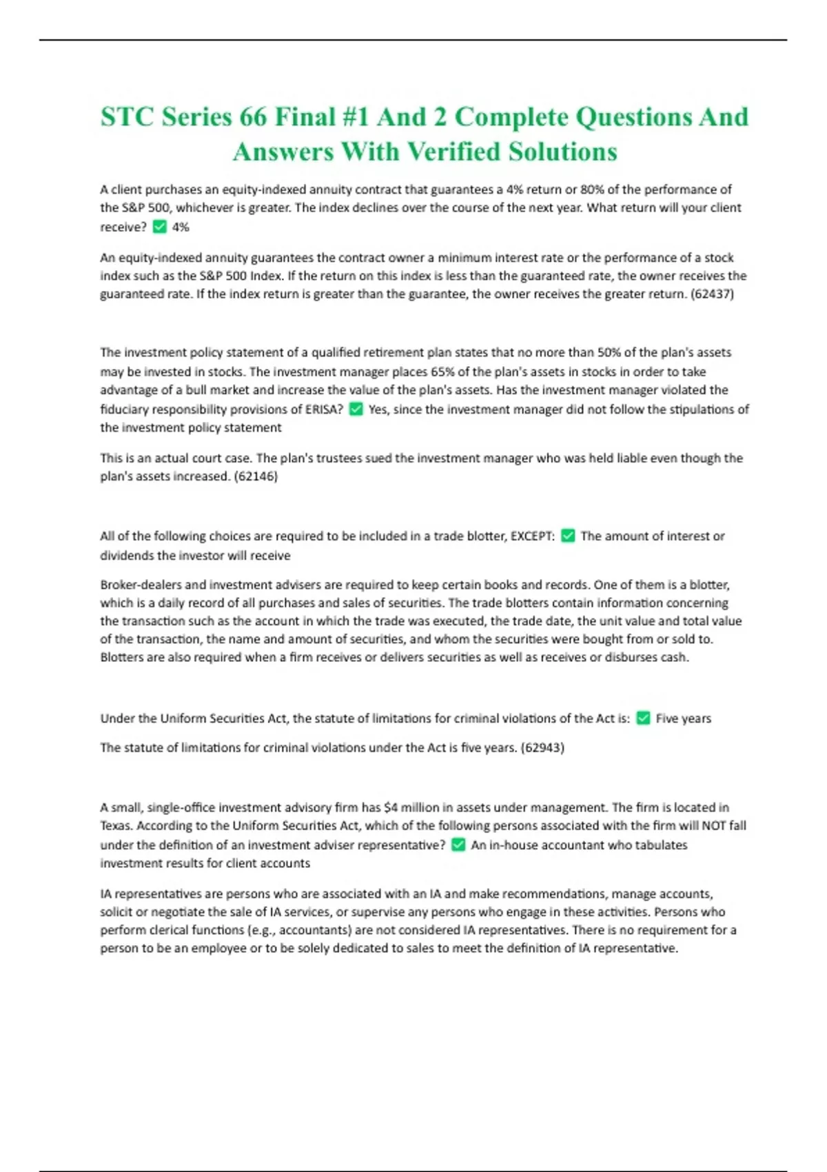 STC Series 66 Final #1 And 2 Complete Questions And Answers With Verified Solutions STC Series 66 Final #1 And 2 Complete Questions And Answers With Verified Solutions