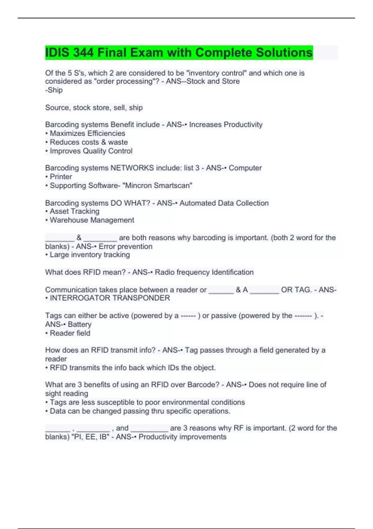 idis 344 final exam with complete solutions