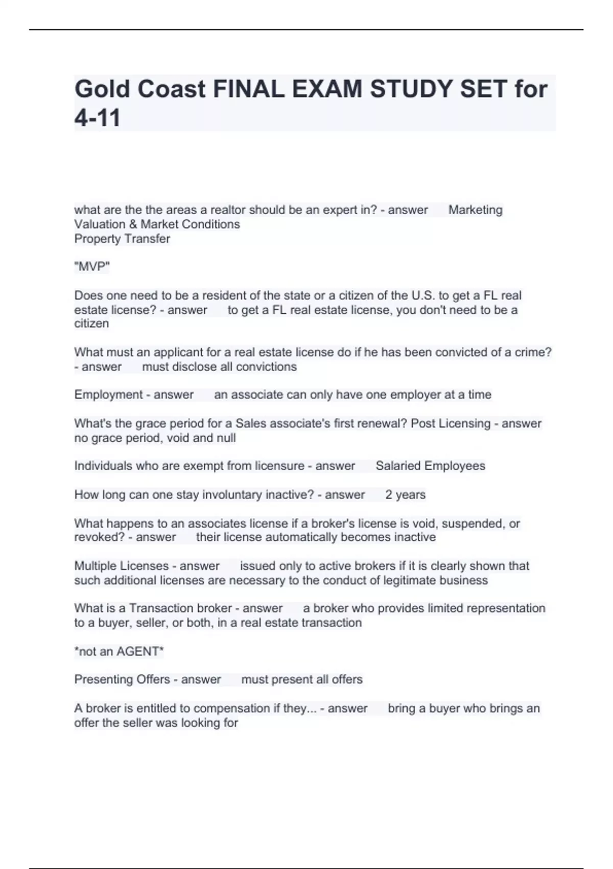 Gold Coast FINAL EXAM STUDY SET for 4-11 Questions and Answers fully solved