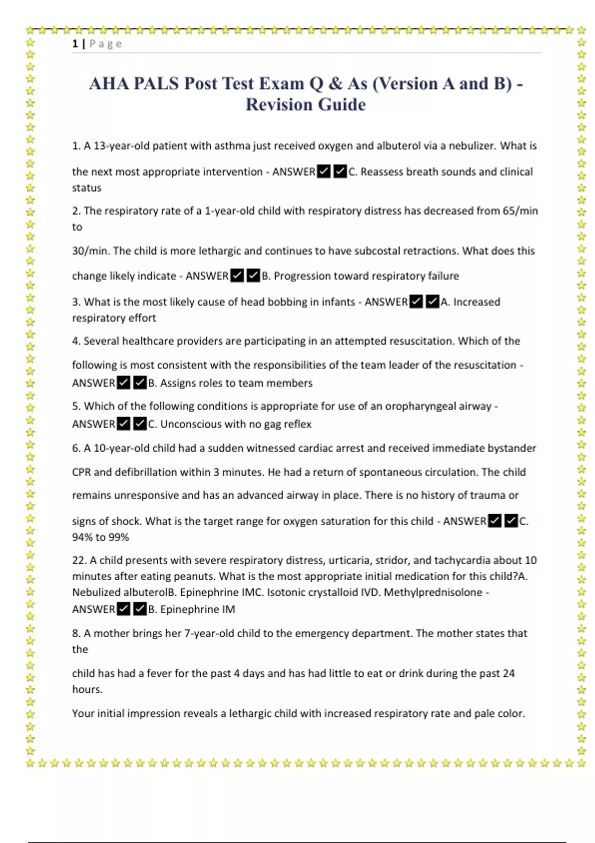 AHA PALS Post Test Exam Q & As (Version A and B) - Revision Guide.
