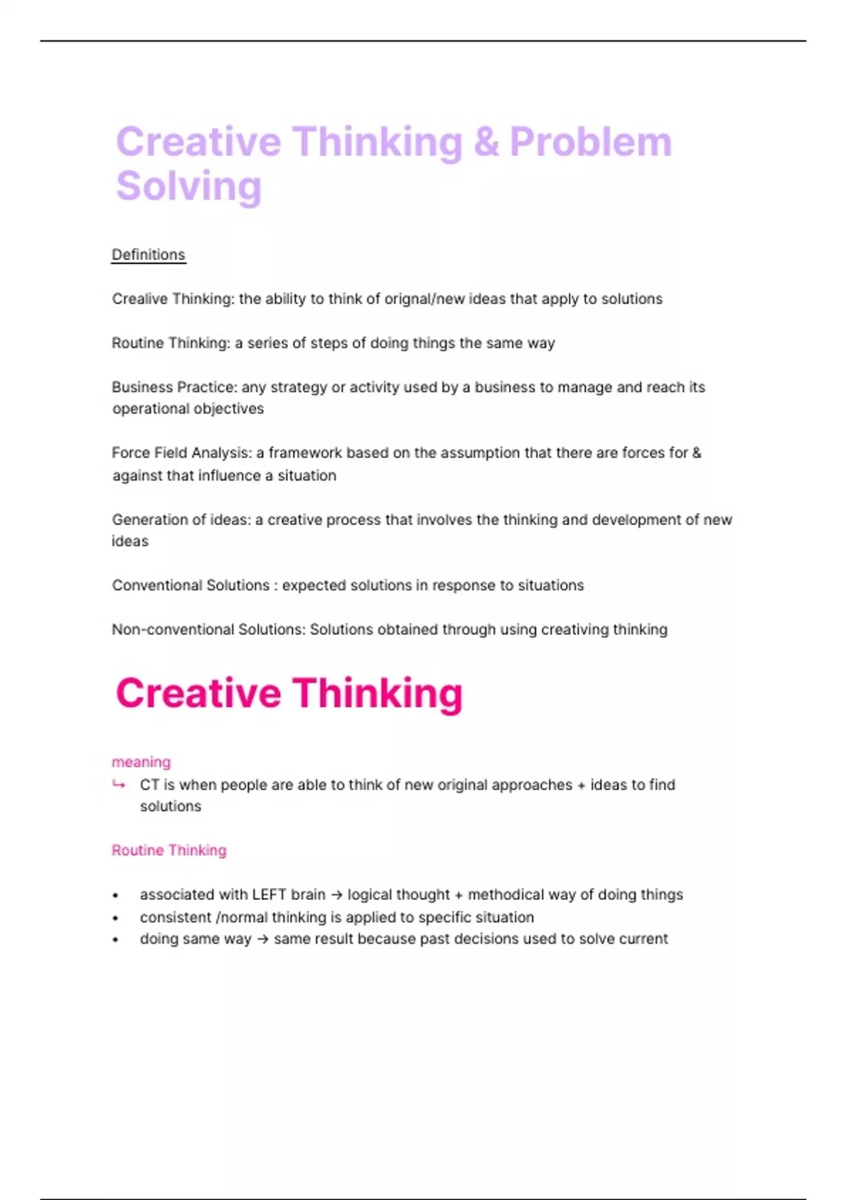 Summary Creative Thinking and Problem Solving
