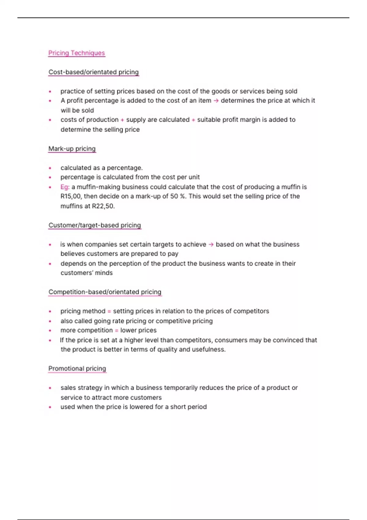 • A profit percentage is added to the cost of an item → determines the price at which it