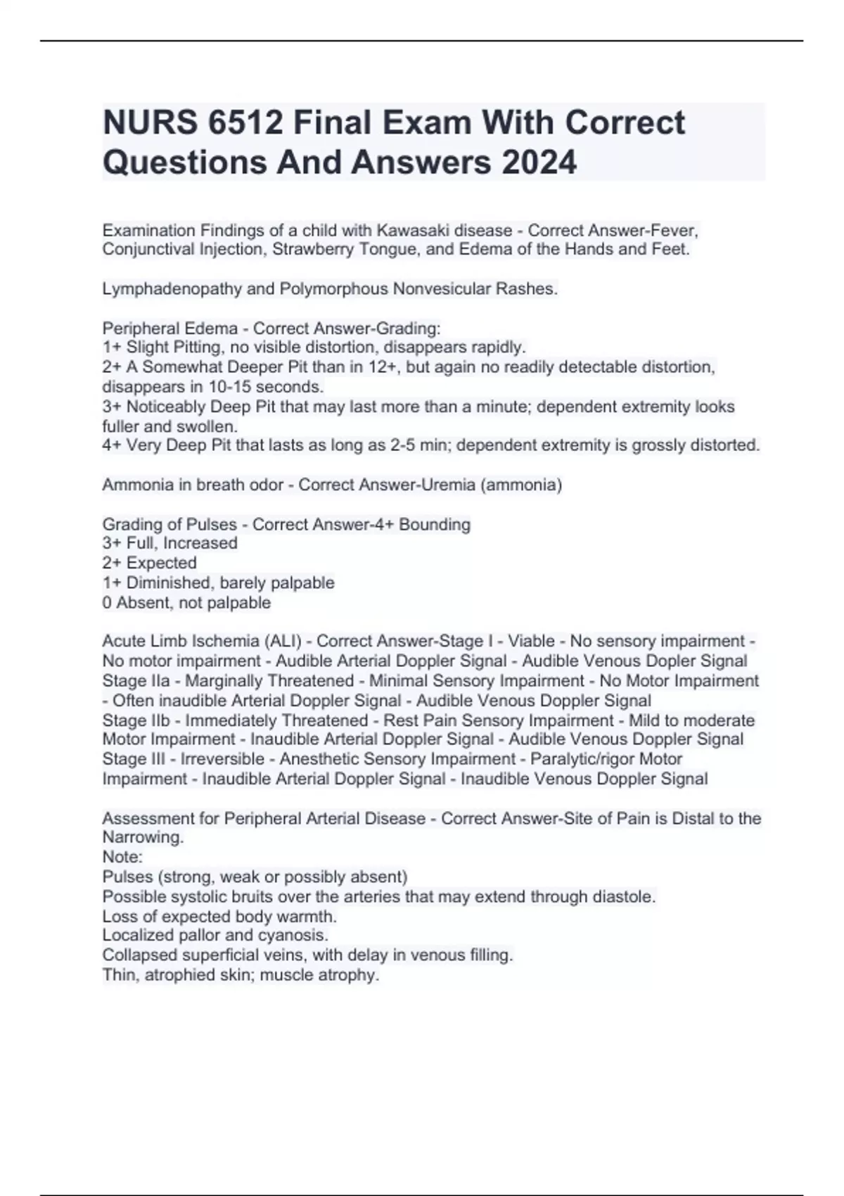 nurs 6512 final exam with correct questions and an