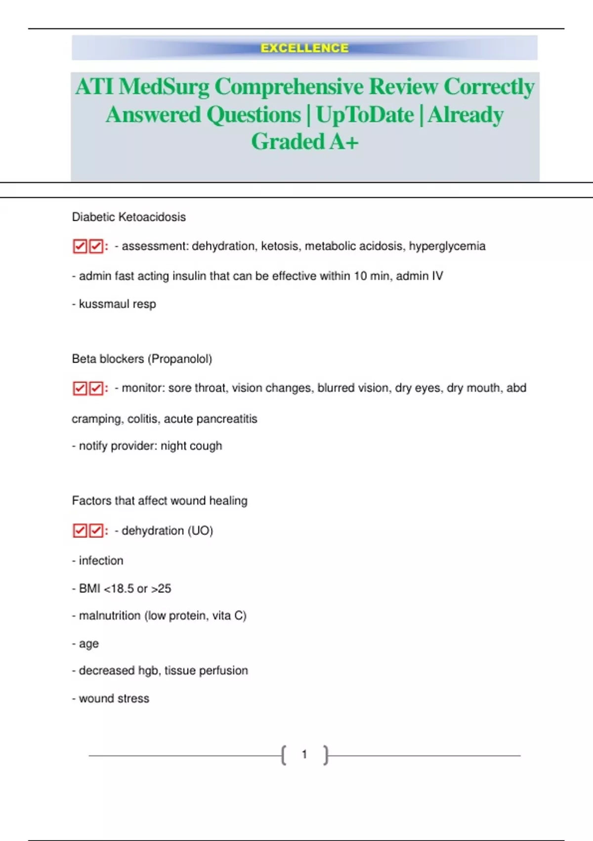 ATI MedSurg Comprehensive Review Correctly Answered Questions| UpToDate | Already Graded A+