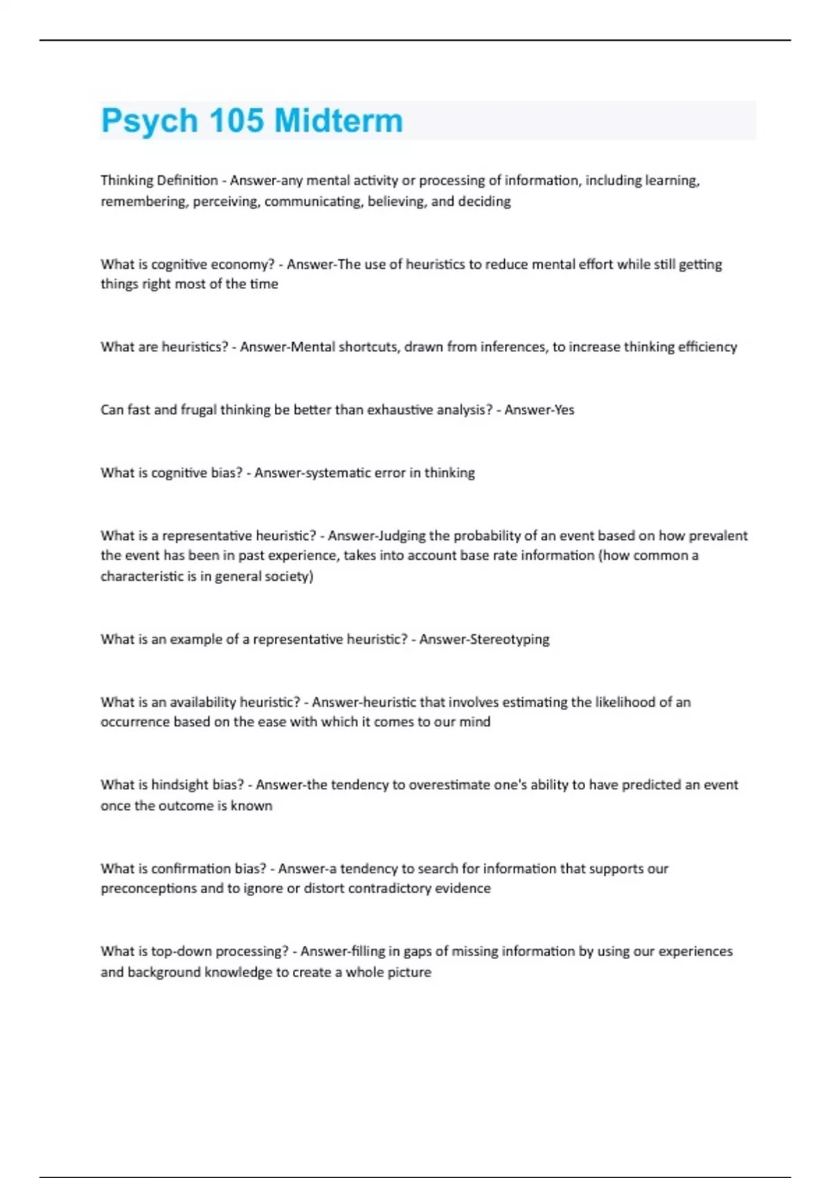Psych 105 Midterm Questions Perfectly Answered!!