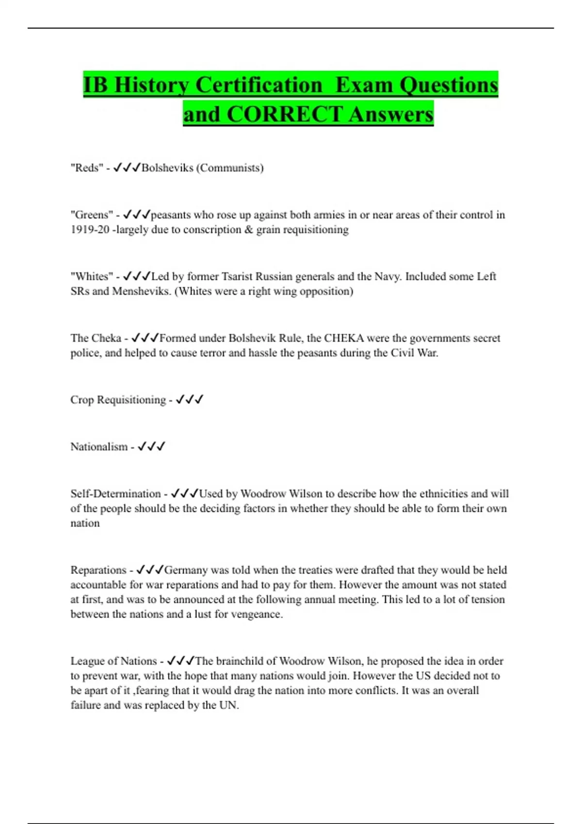 IB History Certification Exam Questions and CORRECT Answers