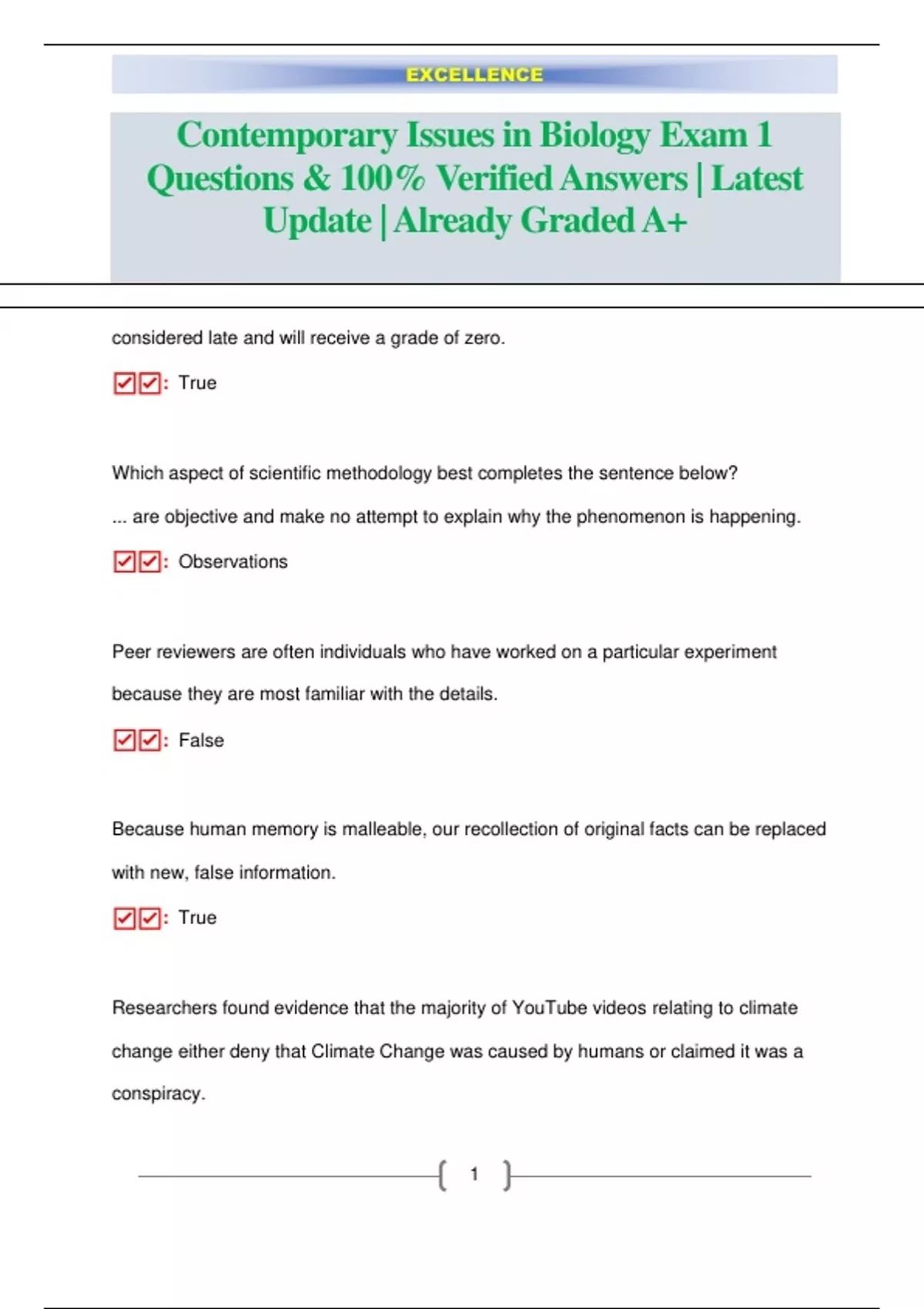 Contemporary Issues in Biology Exam 1 Questions & 100% Verified Answers | Latest Update | Already Graded A+