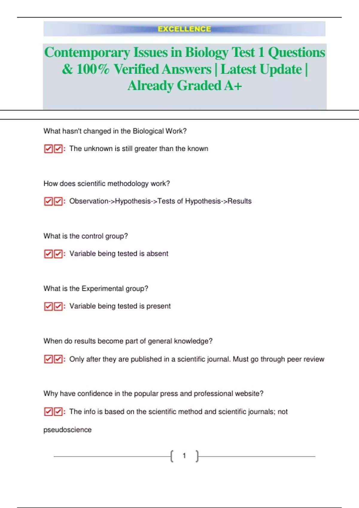 Contemporary Issues in Biology Test 1 Questions & 100% Verified Answers | Latest Update | Already Graded A+