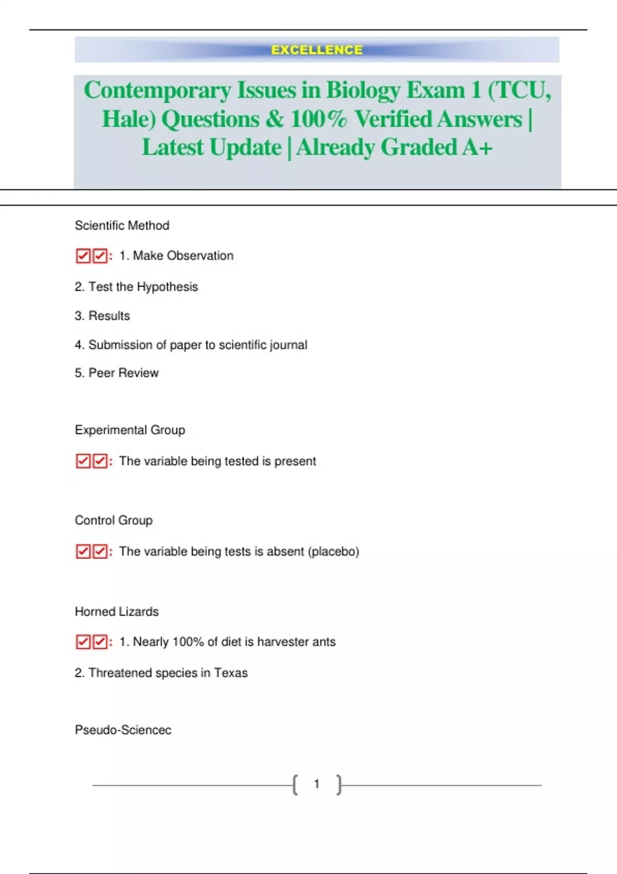 Contemporary Issues in Biology Exam 1 (TCU, Hale) Questions & 100% Verified Answers | Latest Update | Already Graded A+