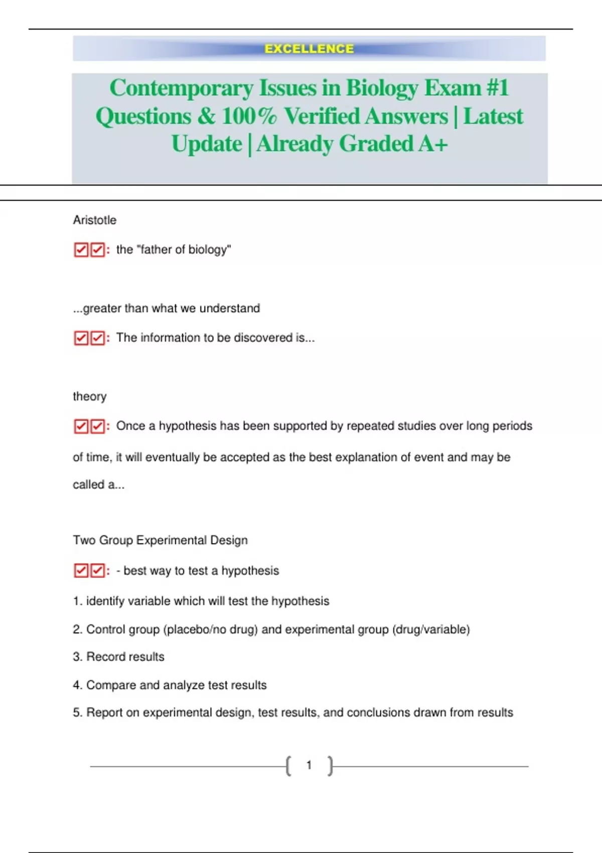 Contemporary Issues in Biology Exam #1 Questions & 100% Verified Answers | Latest Update | Already Graded A+