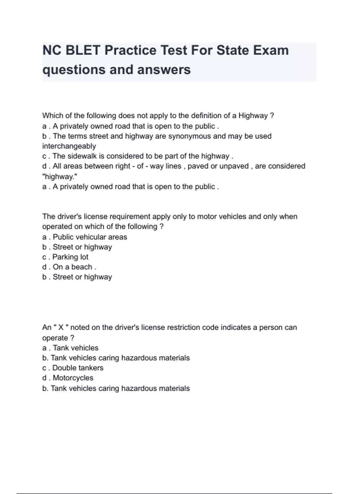 NC BLET Practice Test For State Exam questions and answers