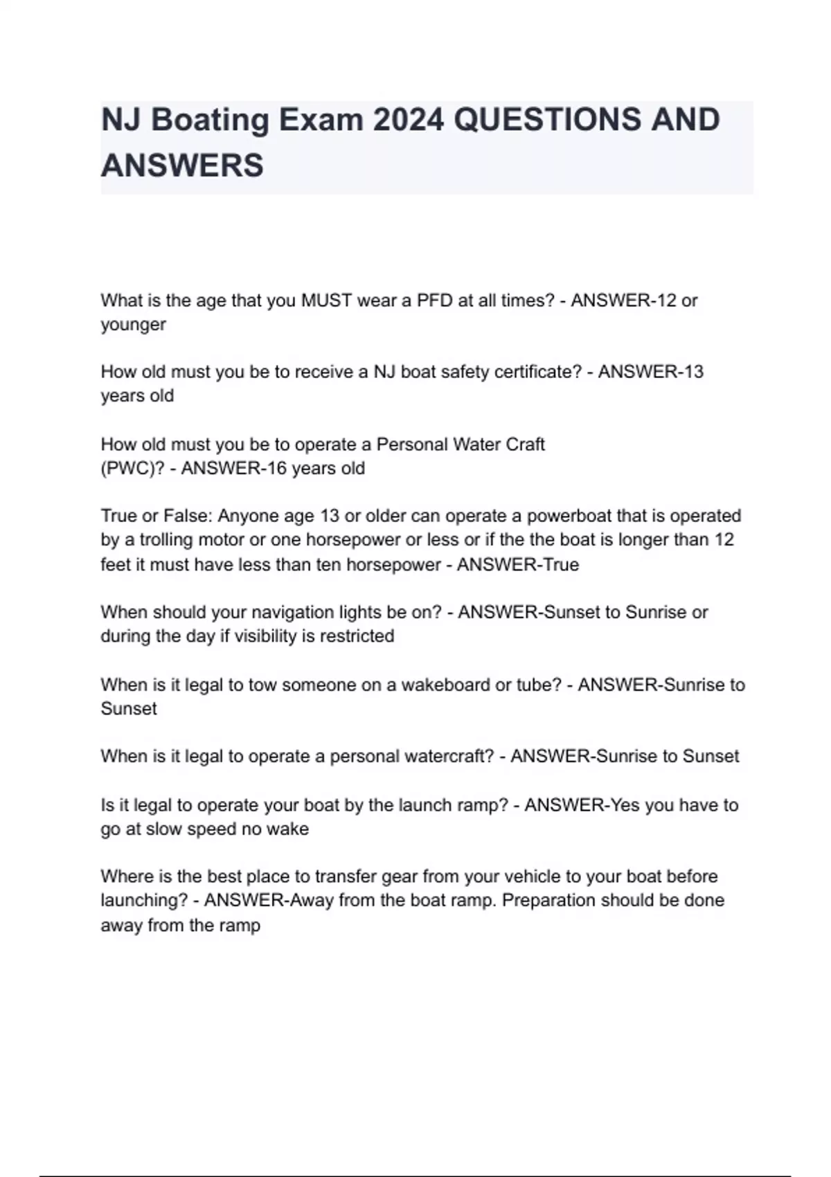nj boating exam 2024 questions and answers