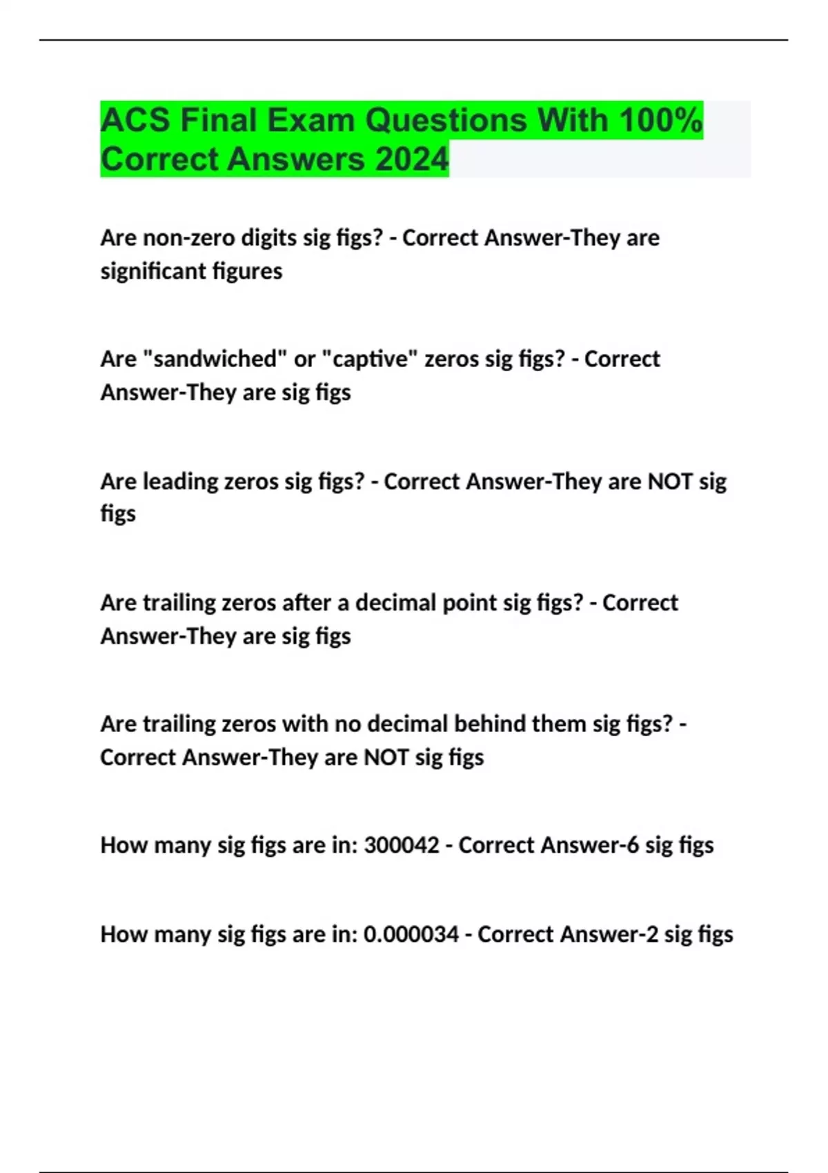 ACS Final Exam Questions With 100% Correct Answers 2024