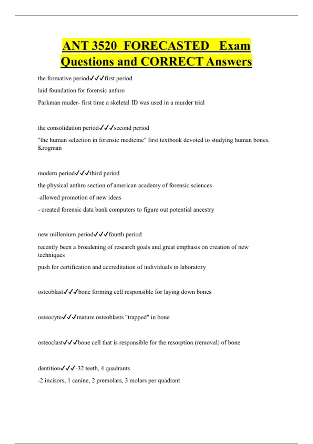 ANT 3520 FORECASTED Exam Questions and CORRECT Answers