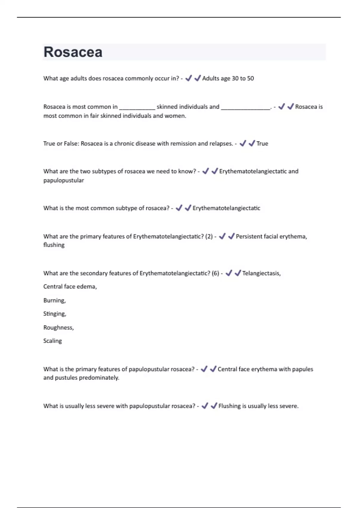 Rosacea Questions And Answers With Verified Study Solutions
