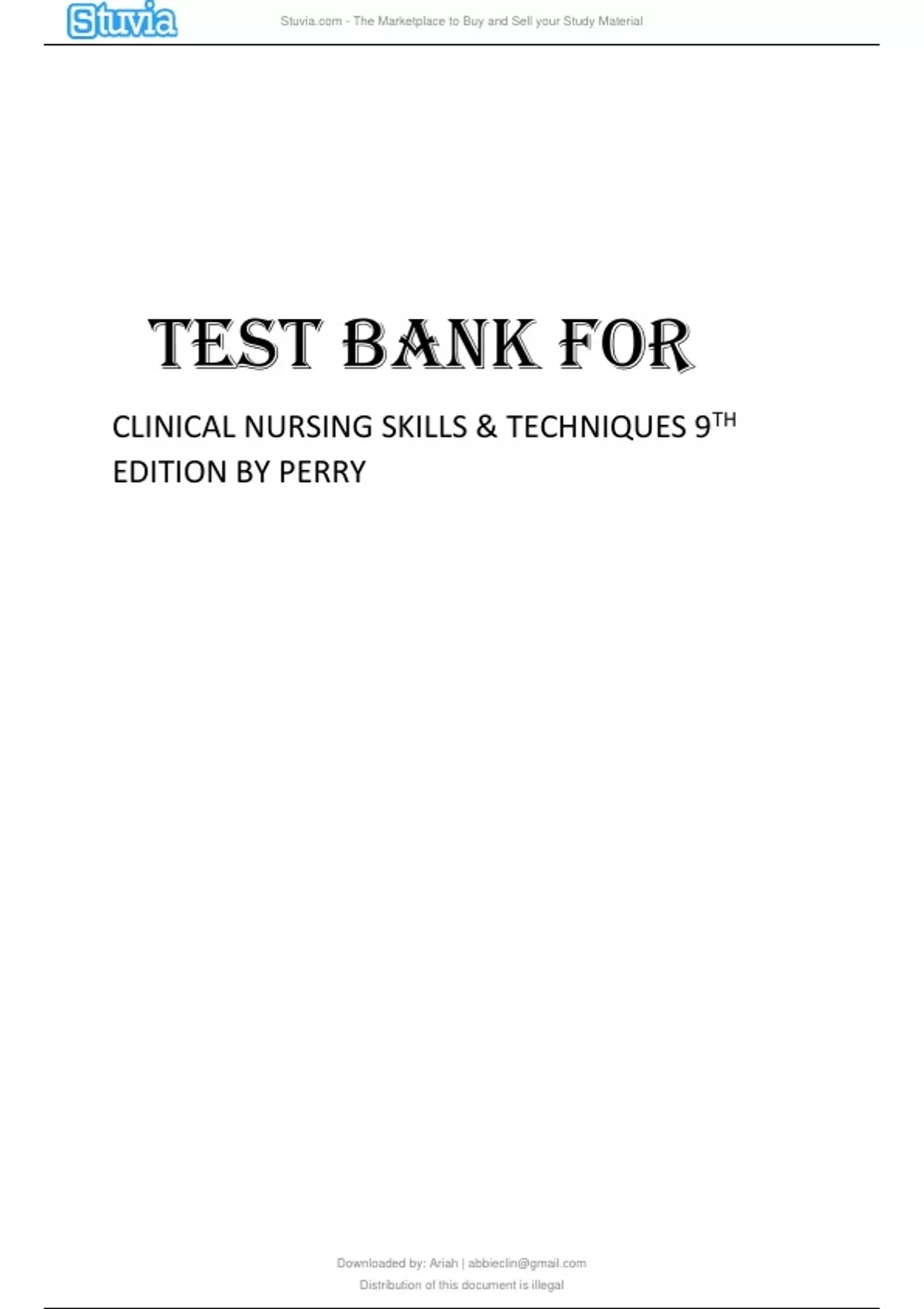 TEST BANK FOR CLINICAL NURSING SKILLS AND TECHNIQUES 9TH EDITION BY PERRY.