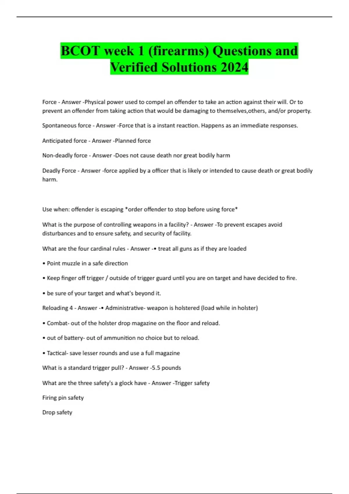 What are the four cardinal rules - Answer -• treat all guns as if they are loaded