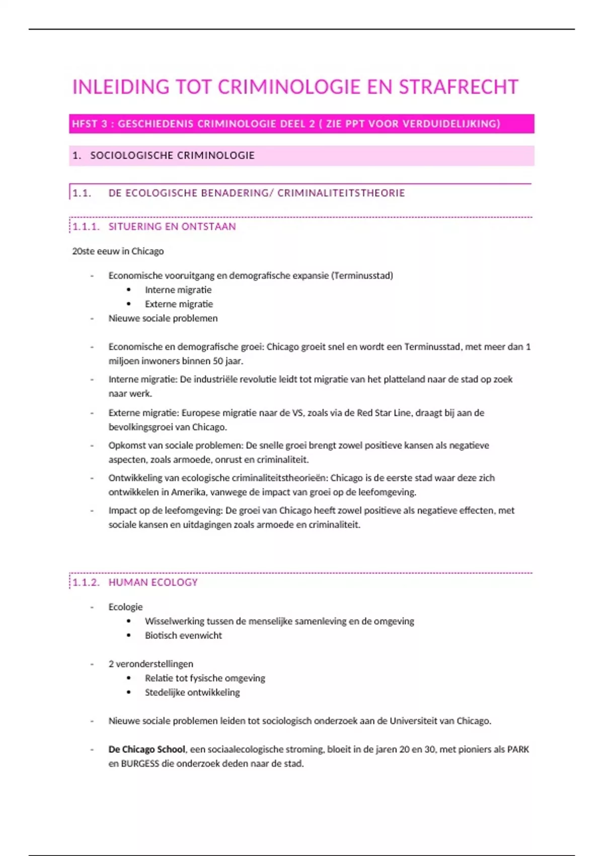 HFST 3 : GESCHIEDENIS CRIMINOLOGIE DEEL 2 ( ZIE PPT VOOR VERDUIDELIJKING)