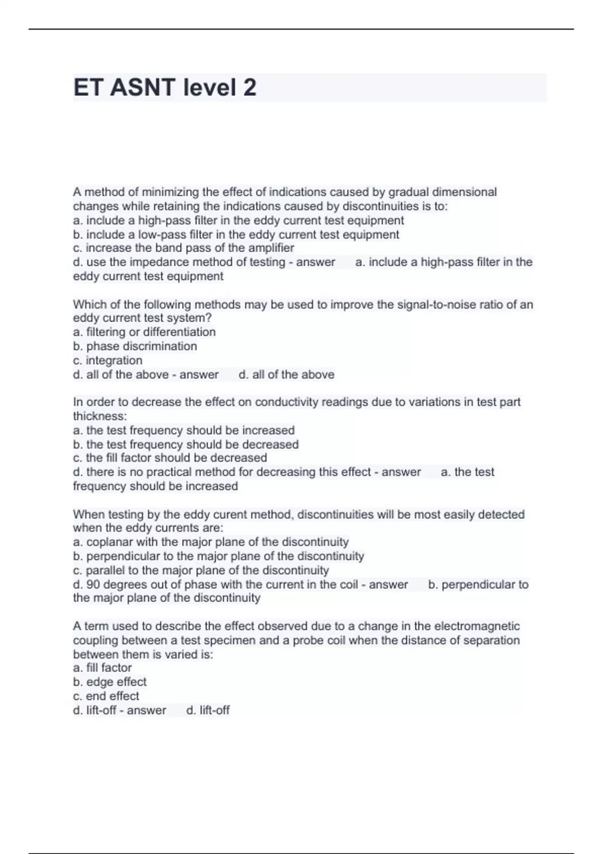 ET ASNT level 2 Questions and Answers 2024