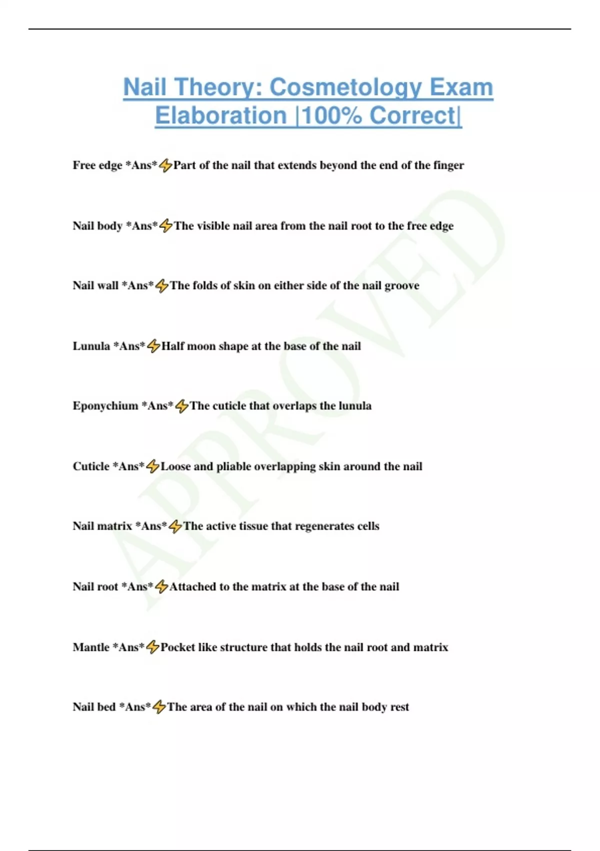 Nail Theory: Cosmetology Exam Elaboration |100% Correct|