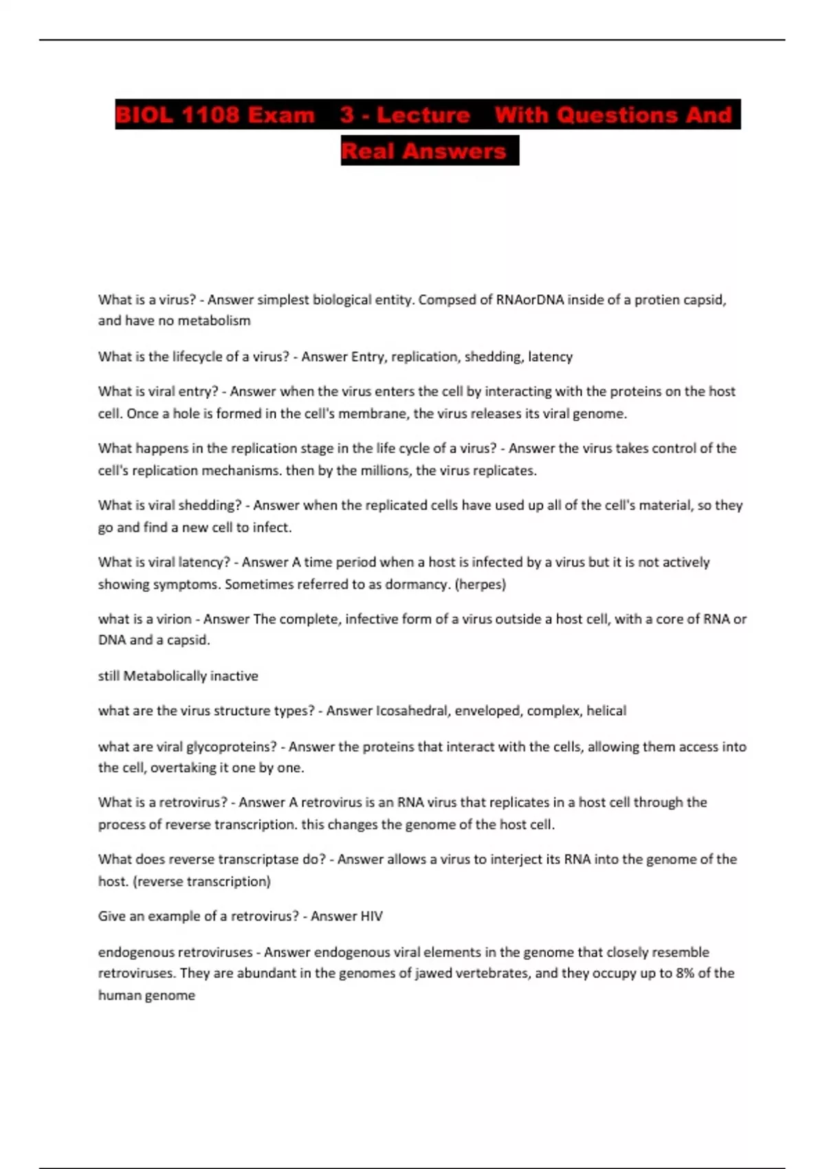Biology 1108 Bundled Exams With Solution