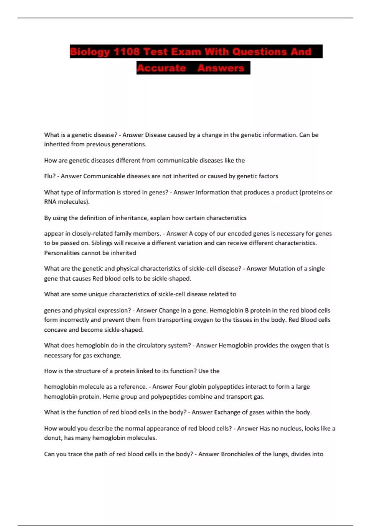 Biology 1108 Test Exam With Questions And Accurate Answers ...