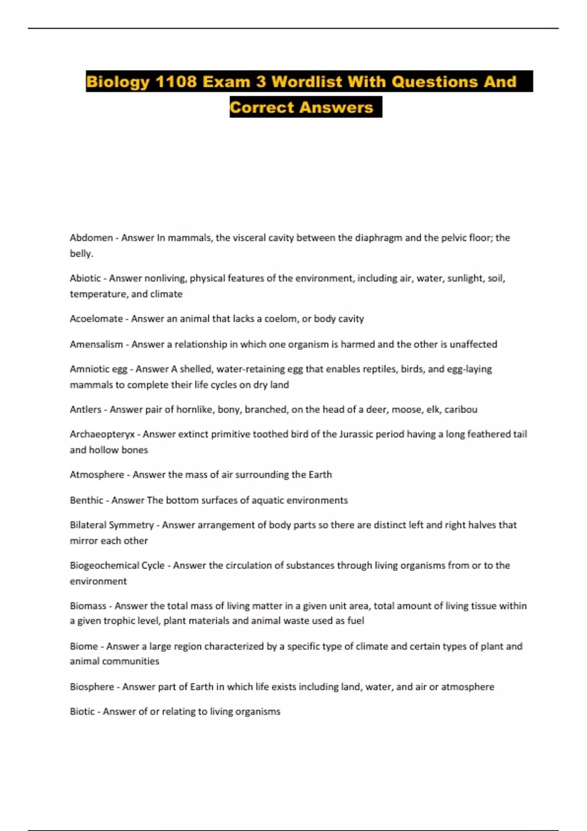 Biology 1108 Exam 3 Wordlist With Questions And Correct Answers ...