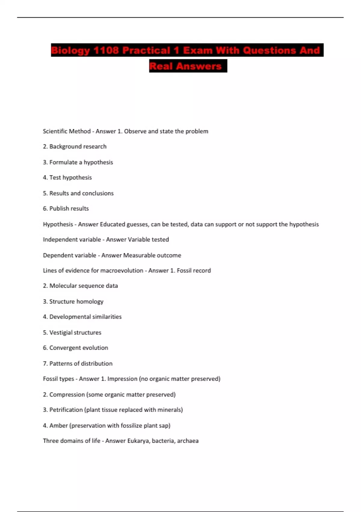 Biology 1108 Practical 1 Exam With Questions And Real Answers