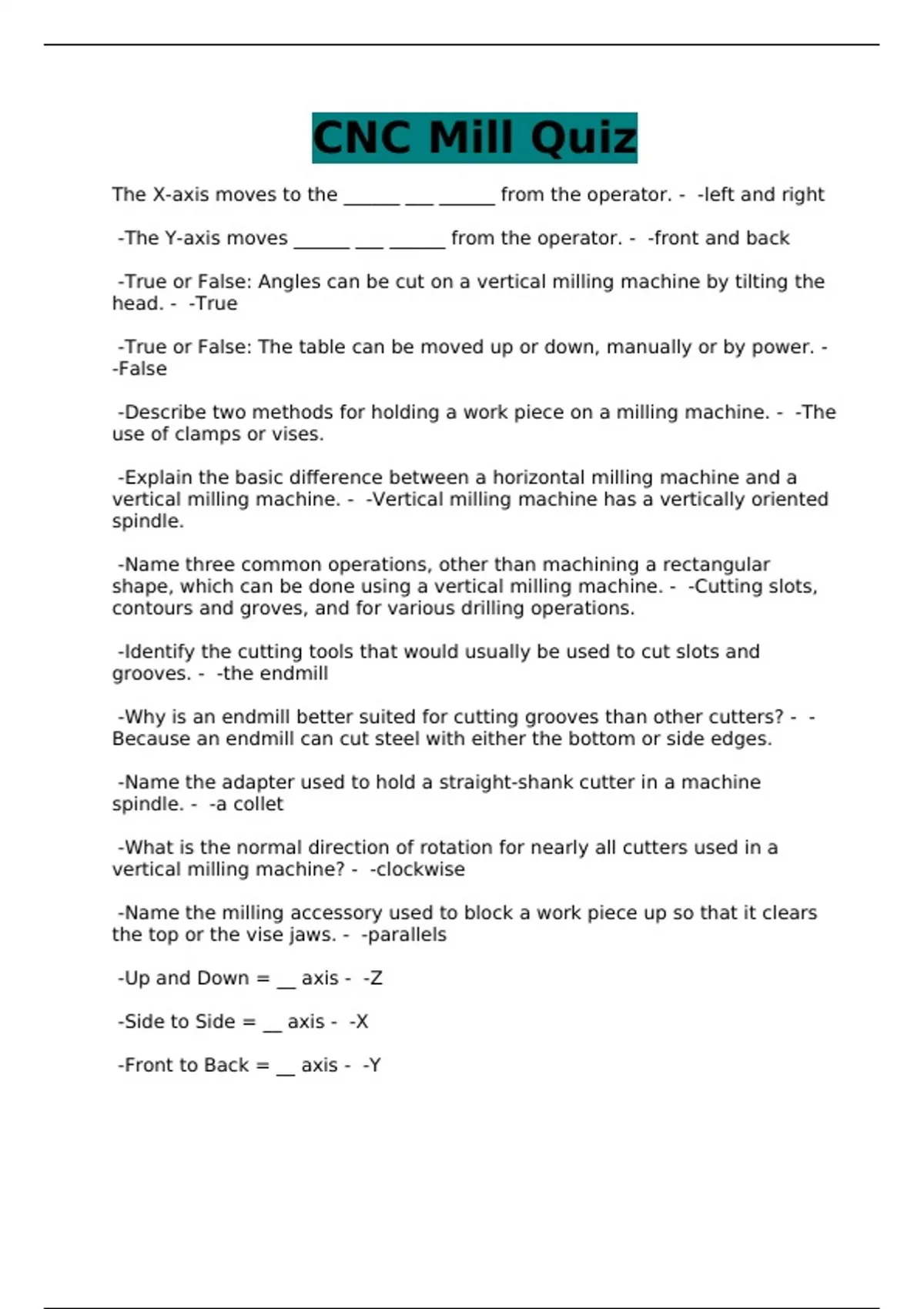 CNC Mill Quiz
