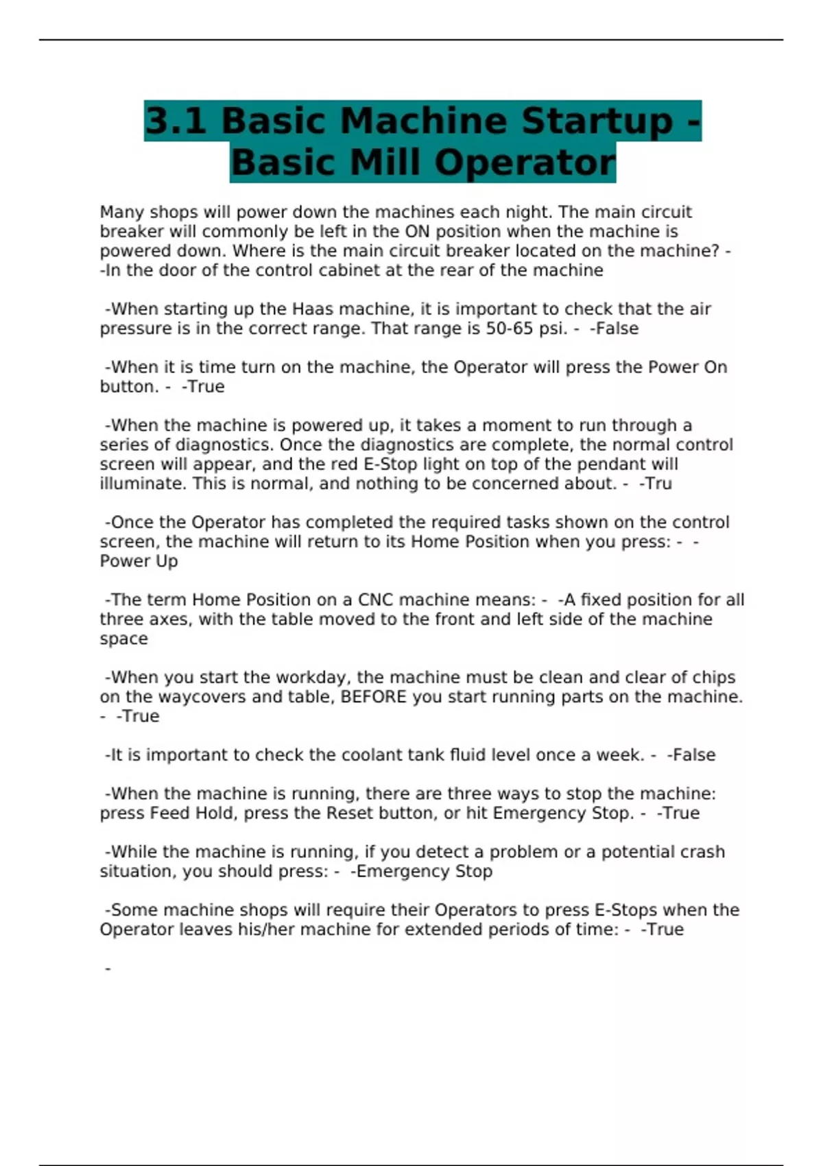 3.1 Basic Machine Startup - Basic Mill Operator