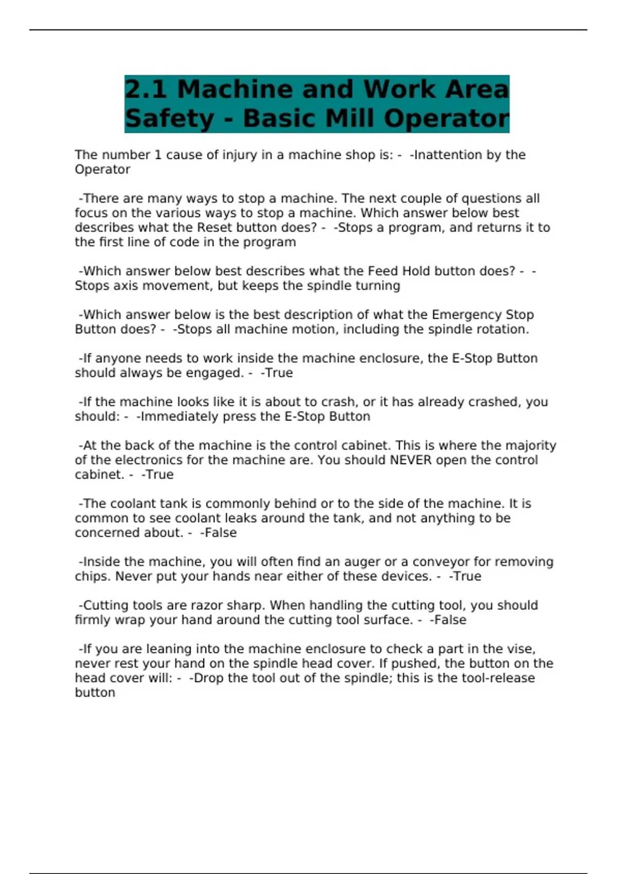 - 2.1 Machine and Work Area Safety - Basic Mill Oper