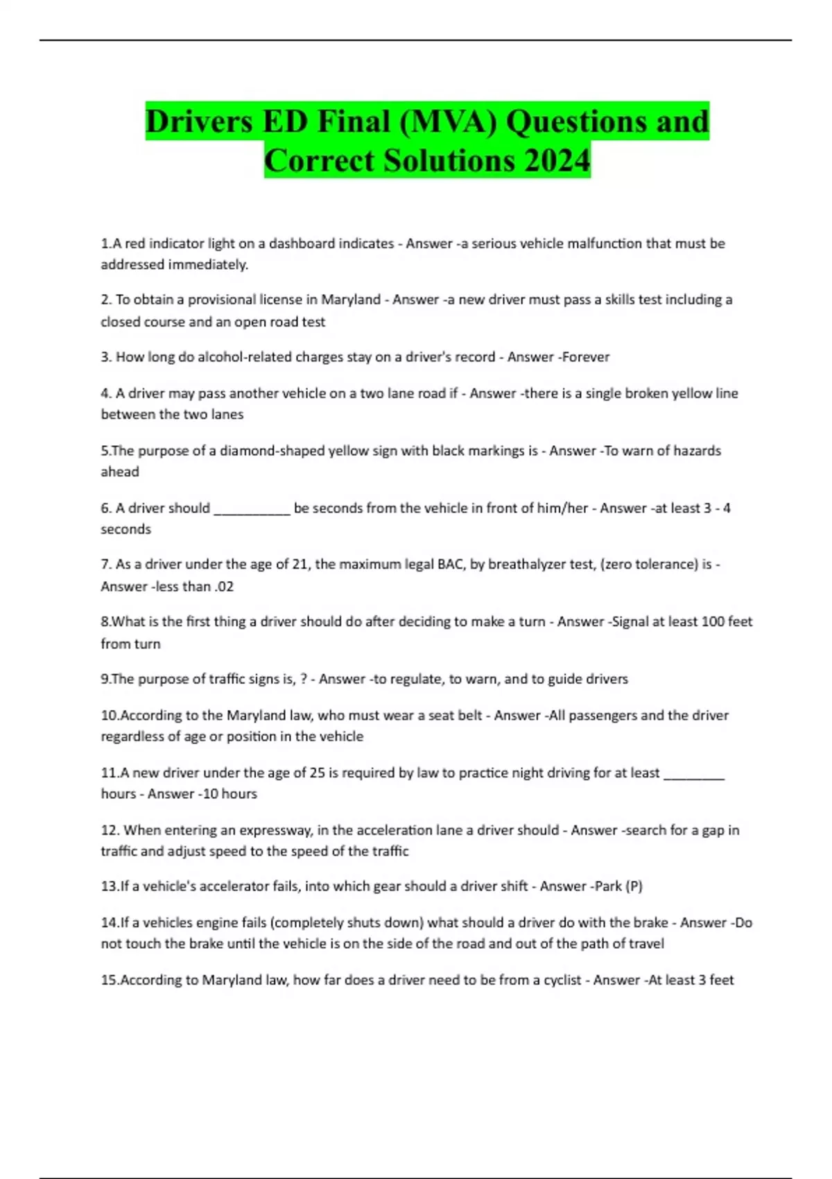 consecutive monthsMaryland MVA Driver's Ed Questions and Correct Solutions 2024