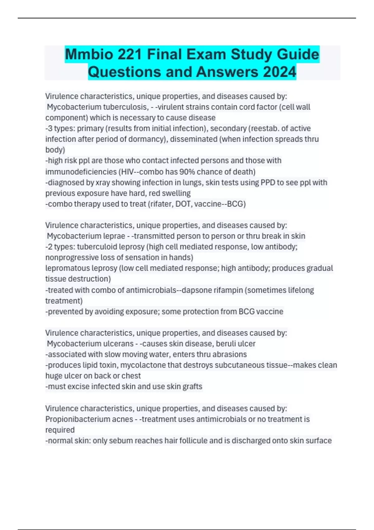 Mmbio 221 Final Exam Study Guide Questions and Answers 2024