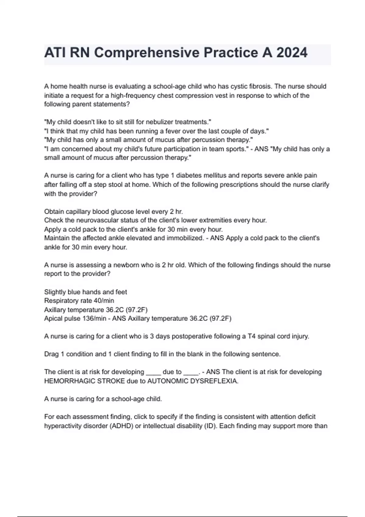 - ATI RN Comprehensive Predictor 2019 Form A B C