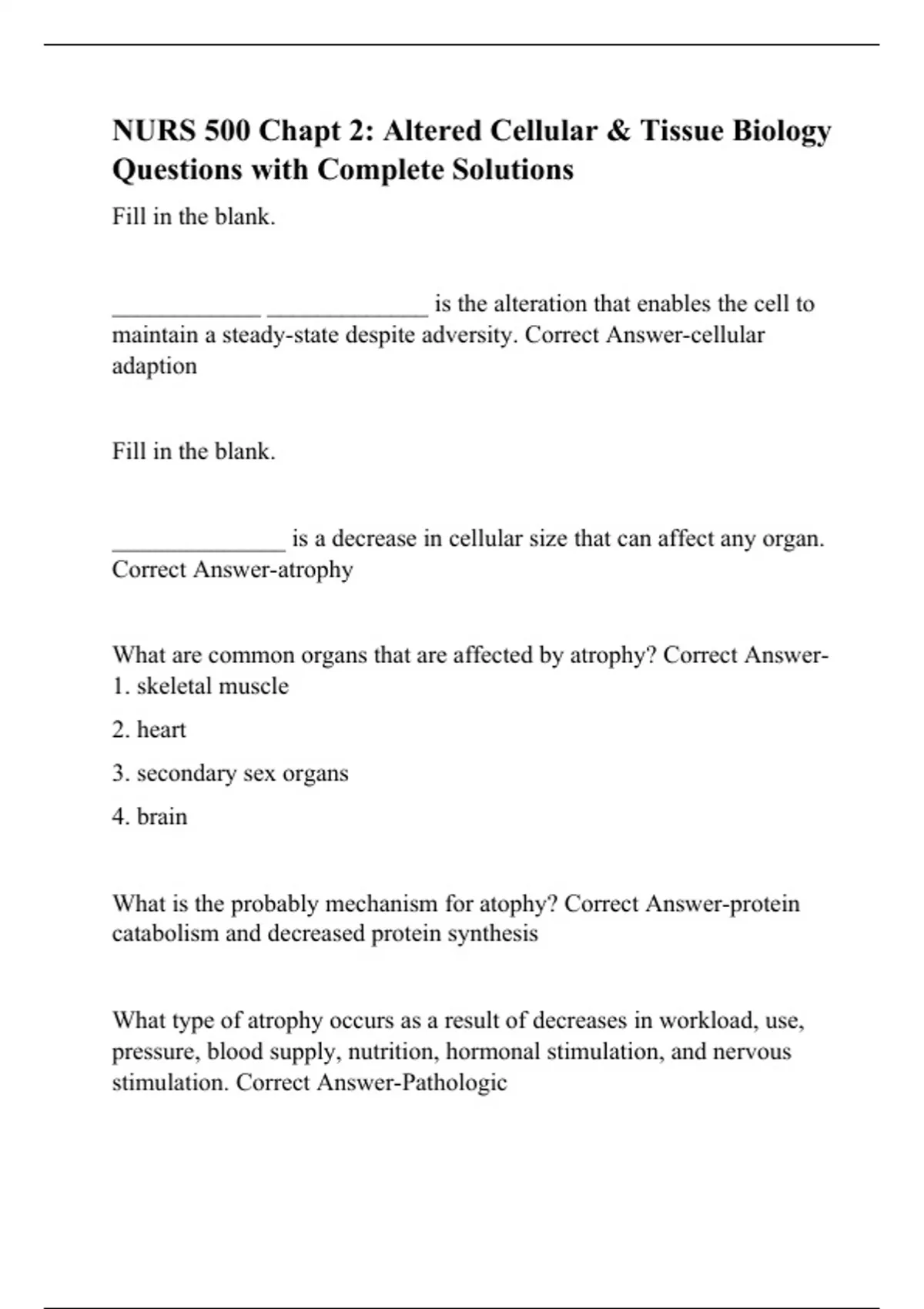 NURS 500 Chapt 2: Altered Cellular & Tissue Biology Questions with Complete Solutions