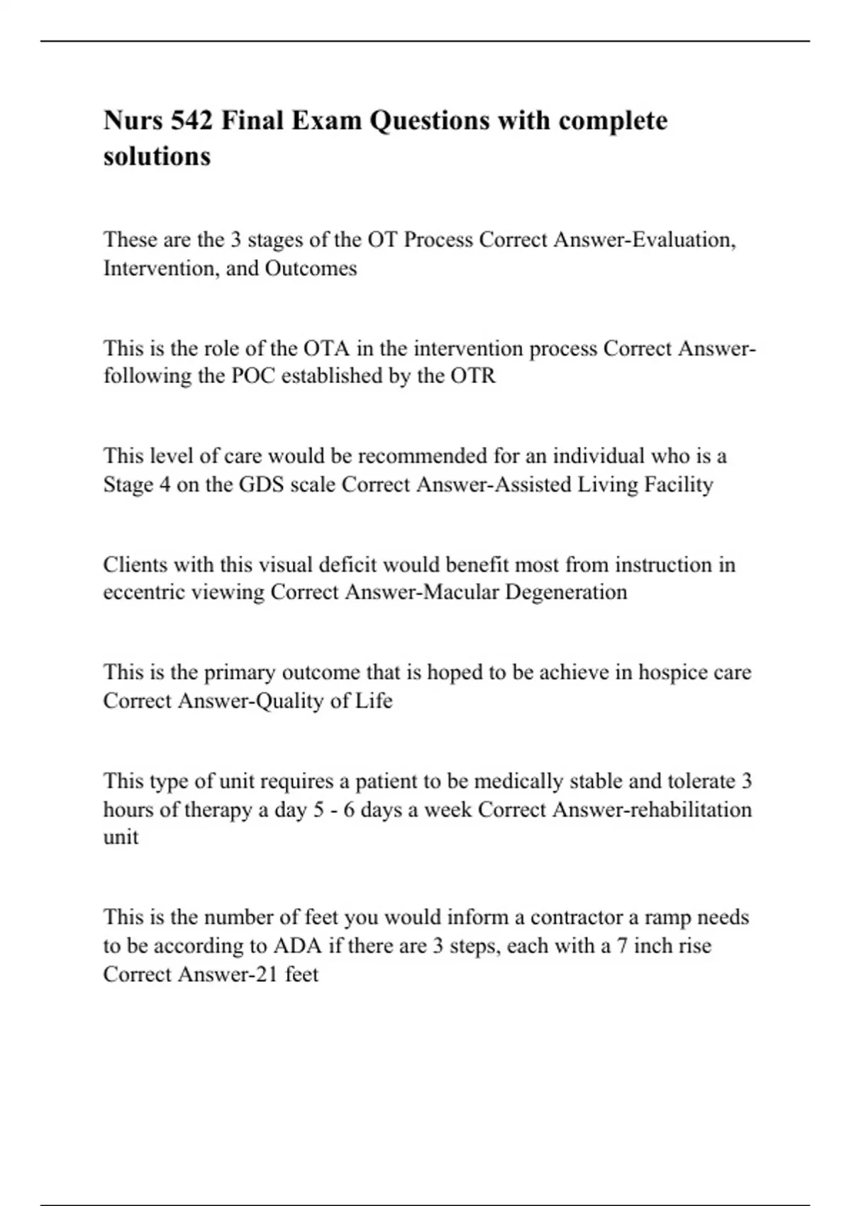 NURS 542 University Of Illinois - Chicago -Nurs 542 Final Exam Questions with complete solutions.