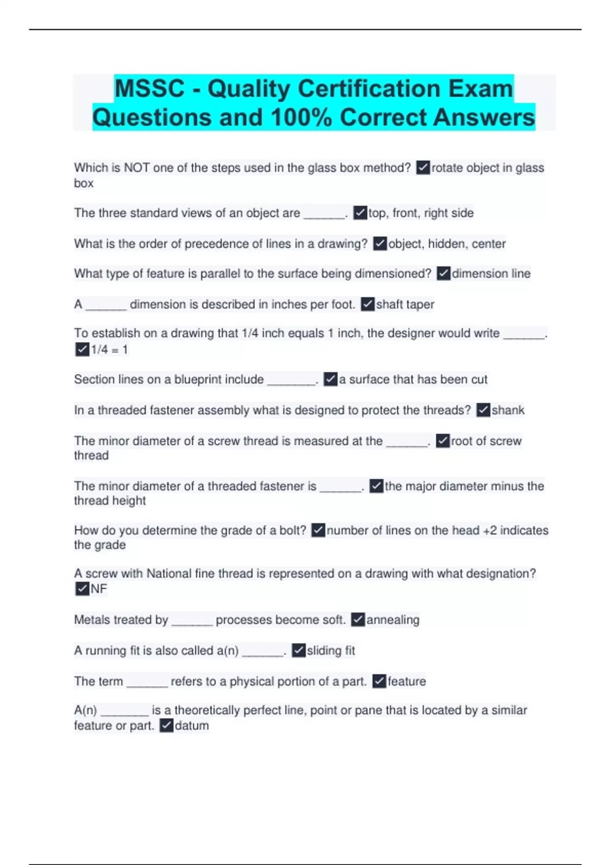 MSSC - Quality Certification Exam Questions and 100% Correct Answers