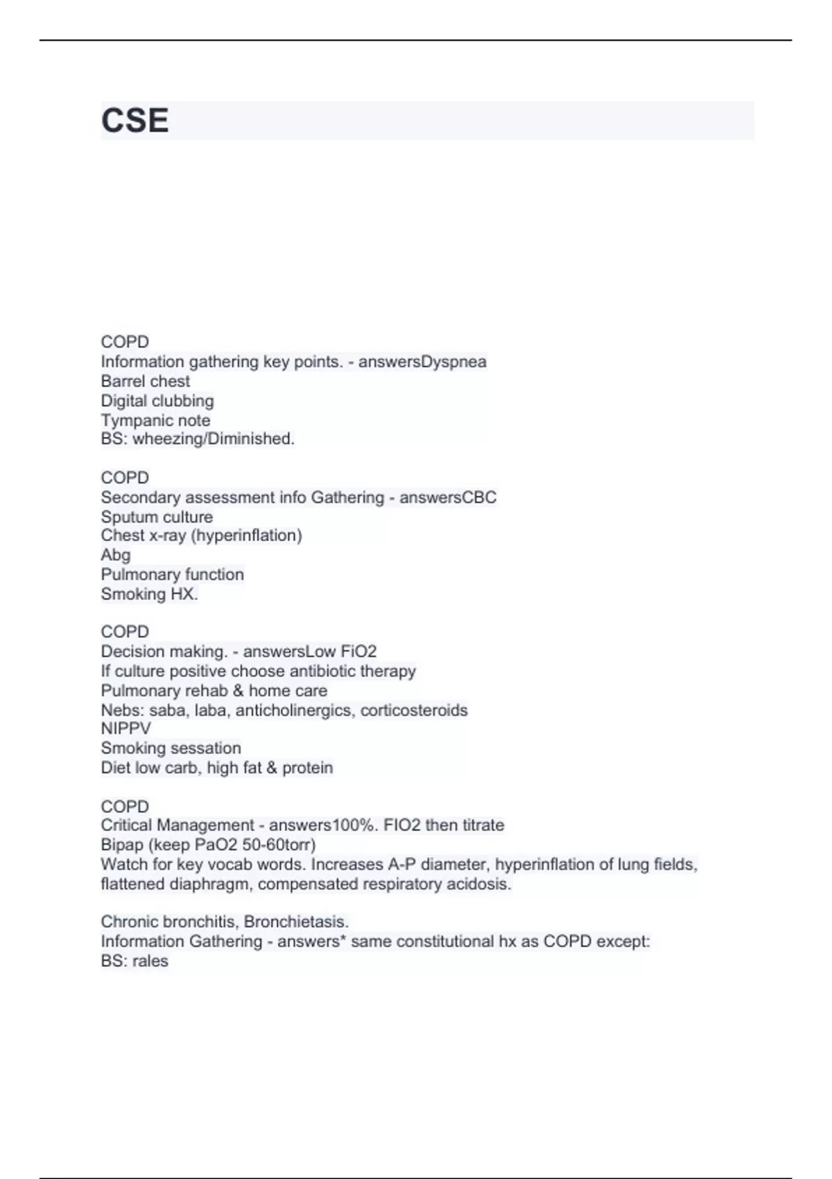 CSE -COPD questions and answers Rated A+