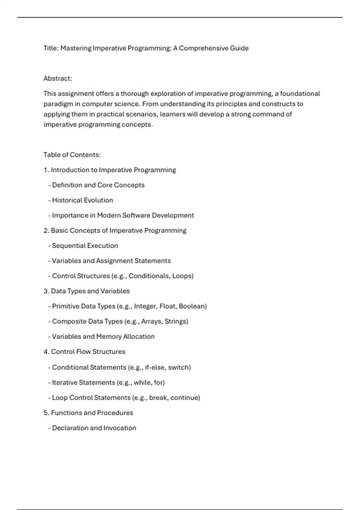 This assignment offers a thorough exploration of imperative programming, a foundational
