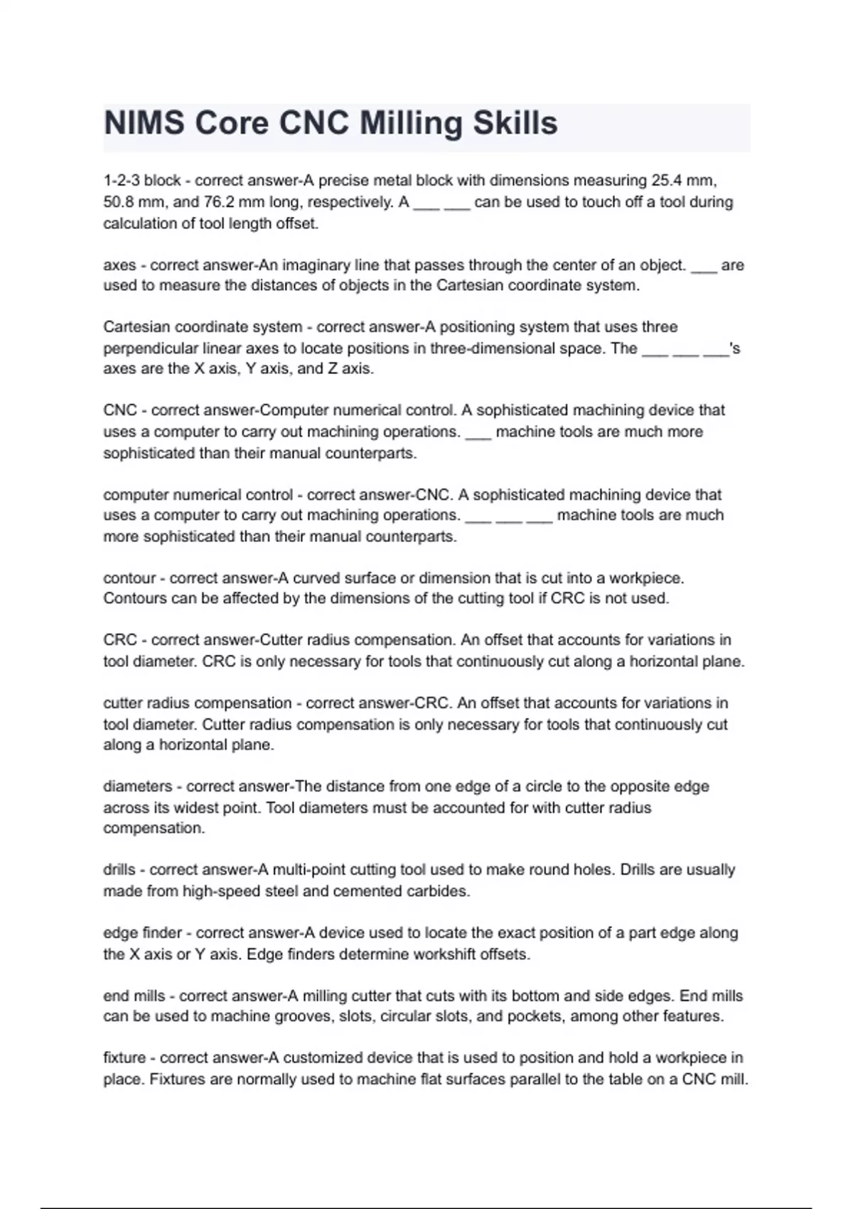 NIMS Core CNC Milling Skills with complete solution