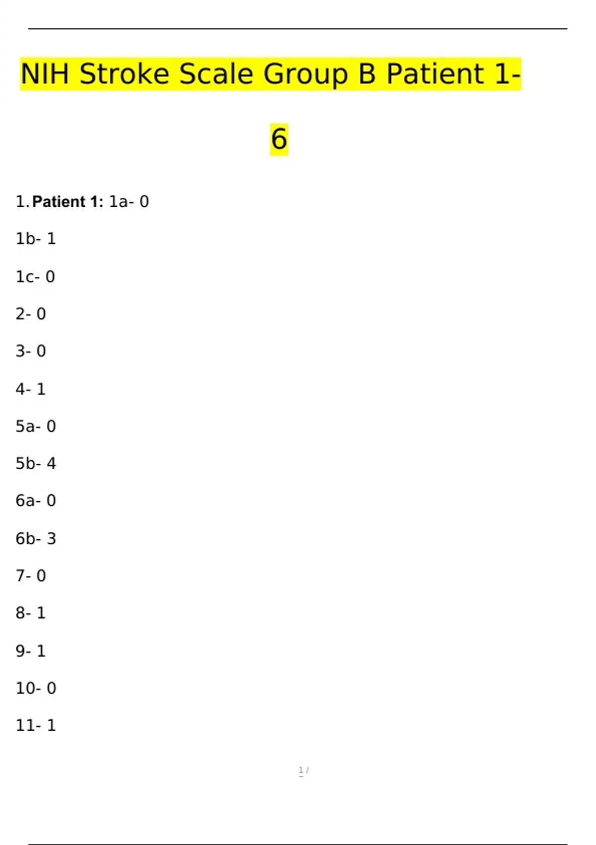 NIH Stroke Scale Group B Patient 1-6 Questions with 100% Correct Answers | Updated & Verified