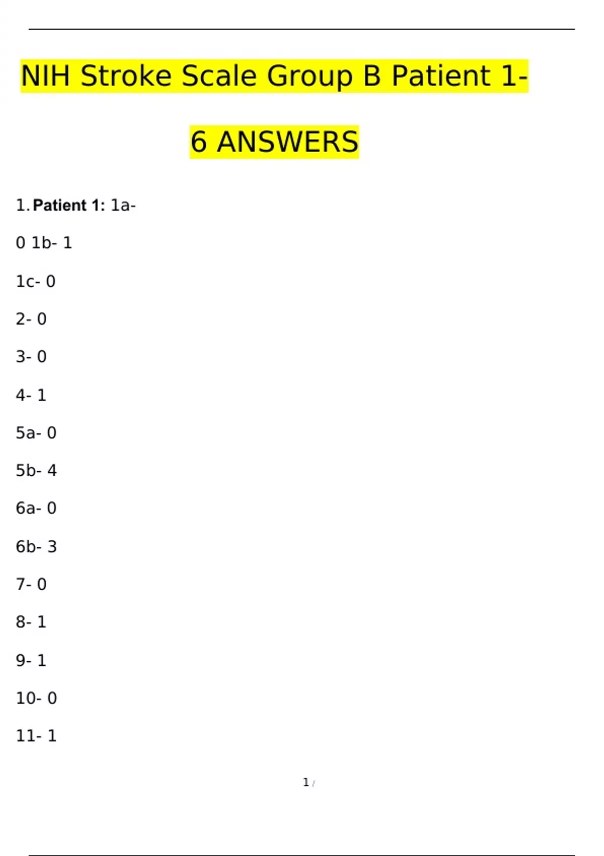 NIH Stroke Scale Group B Patient 1-6 ANSWERS 100%