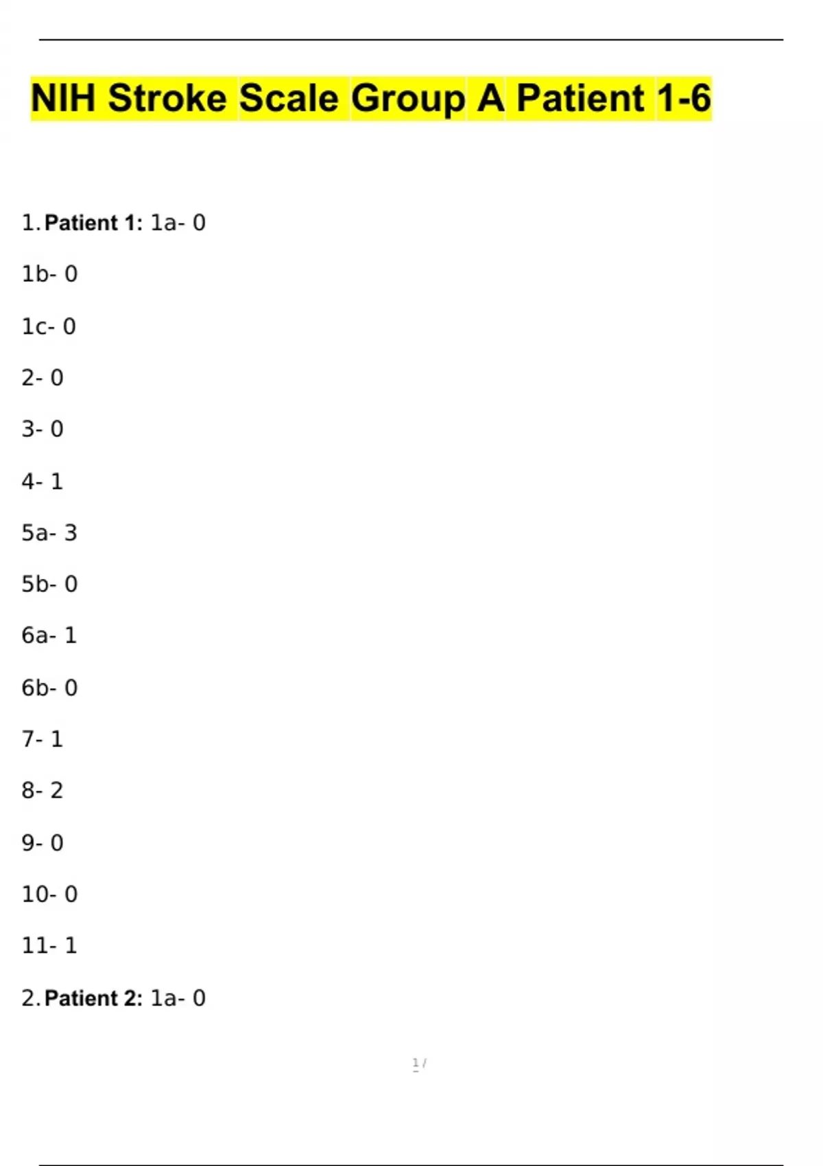 NIH Stroke Scale Group A Patient 1-6 ANSWERS 100%
