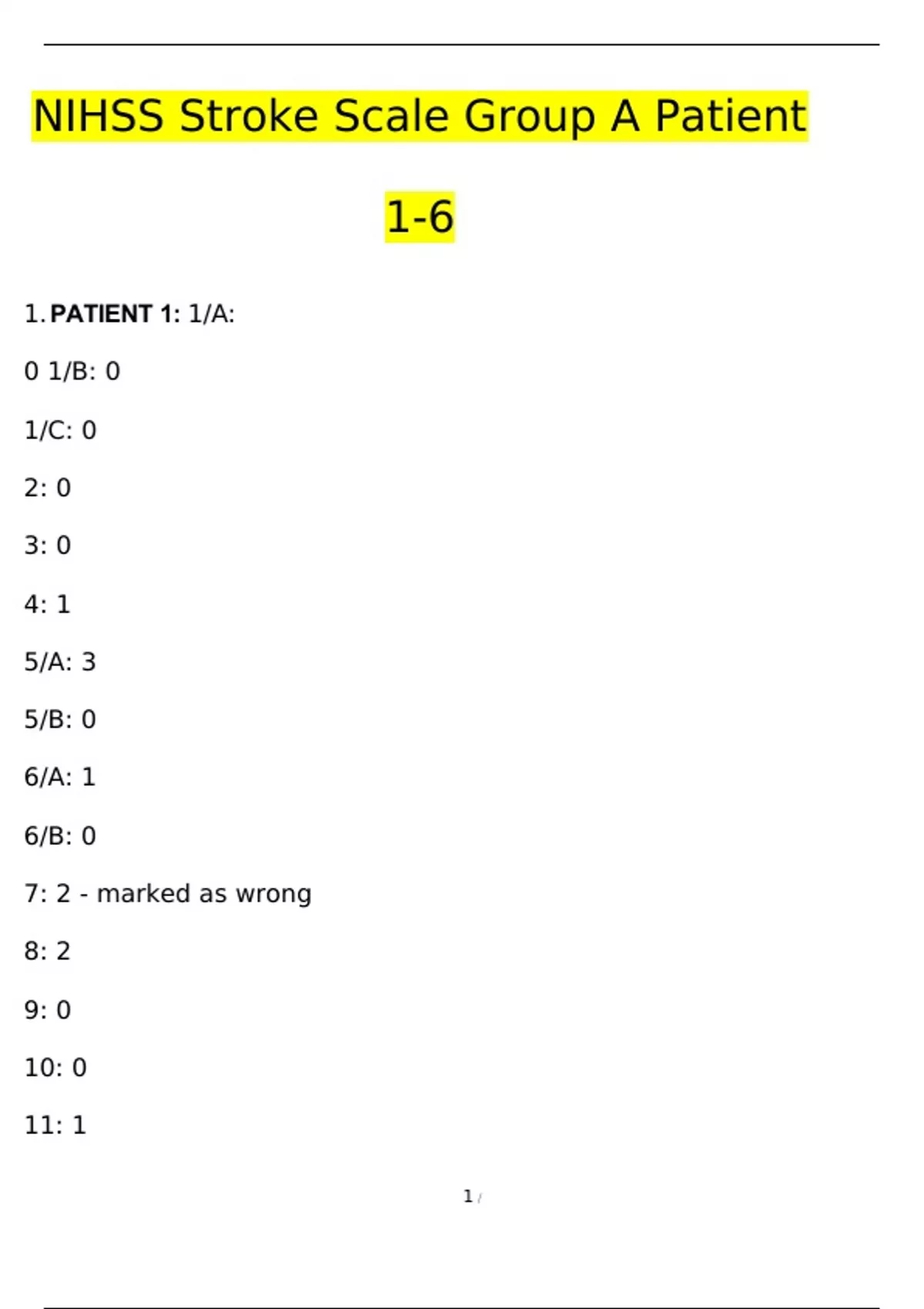 NIHSS Stroke Scale Group A Patient 1-6 Questions with 100% Correct Answers | Updated & Verified