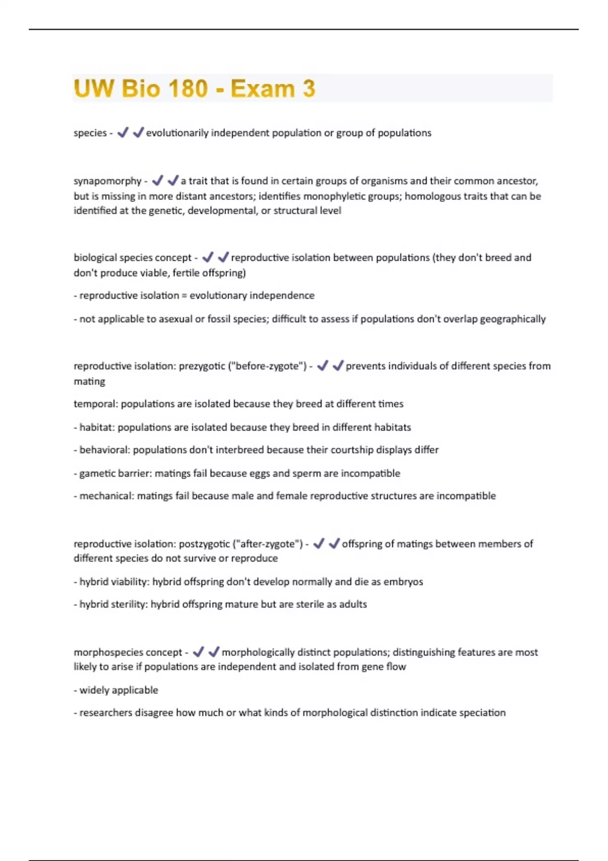 UW Bio 180 - Exam 3 questions and answers graded A+