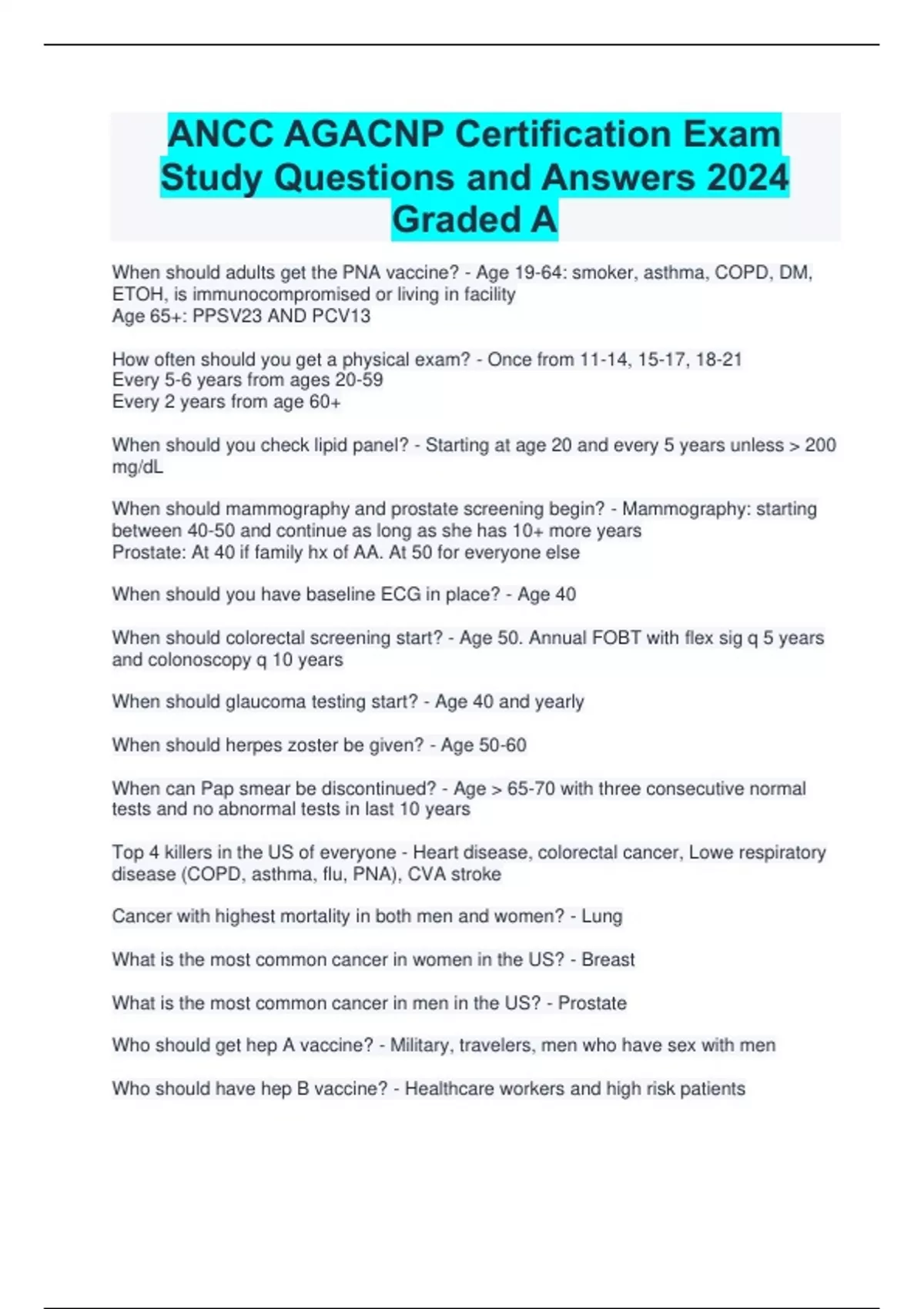 ANCC AGACNP Certification Exam Study Questions and Answers 2024 Graded A