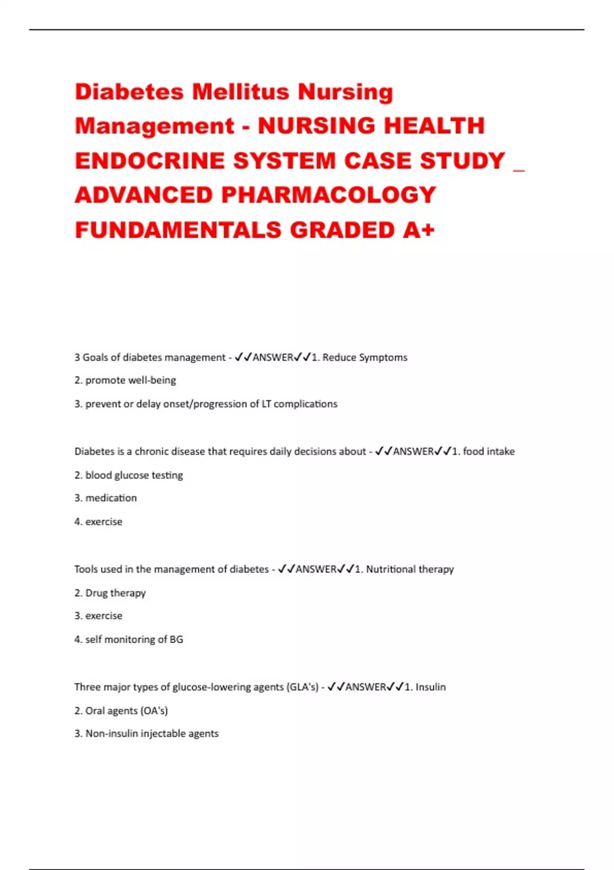 - Diabetes Mellitus Nursing Management - NURSING HE