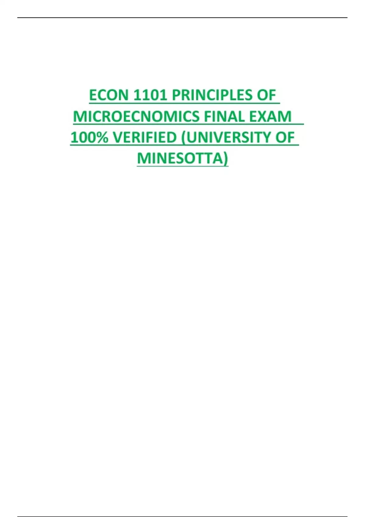 ECON 1101 PRINCIPLES OF MICROECNOMICS FINAL EXAM (With Answer key) 100% VERIFIED (UNIVERSITY OF MINESOTTA)