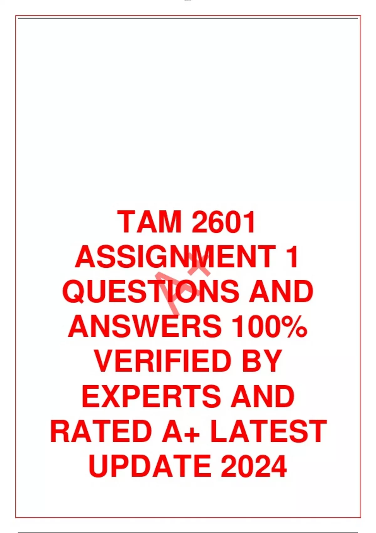 TAM 2601 ASSIGNMENT 1 QUESTIONS AND ANSWERS 100% VERIFIED BY EXPERTS AND RATED A+ LATEST UPDATE 2024